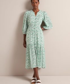 Cut from a beautifully light and drapey cotton viscose voile in two dreamy floral prints, Aspen is the ultimate throw-on-and-look-great summer dress. Machine washable, its flattering V-neckline, bracelet-length blouson sleeve and shirred waist, make it an effortlessly elegant, wear-on-repeat summer saviour.