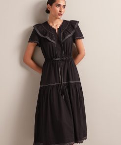 When it comes to easy, everyday dresses that can navigate the beach, sight-seeing and long, lazy lunches, you’d be hard pressed to beat Nessa. Made from our 100% cotton seersucker, it comes with a drawstring waist that can be tied to cinch or left undone for a more relaxed vibe. The pretty frill detailing, keyhole hook-and-eye and tiered skirt keep it light and airy.