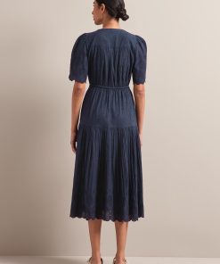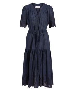 Our new Nicole dress is cut from a cool organic cotton with delicate broderie anglais detail, making it ideal for summer days. Featuring discreet side pockets, pretty scallop hems and a drawstring waist that you can wear loose or cinched for a more defined look. This is the perfect dress for feeling pulled together while staying cool on warmer days whether you’re at a summer party or wandering round a farmer’s market.