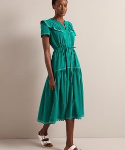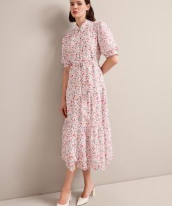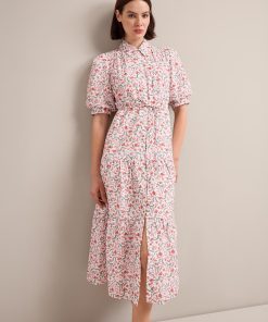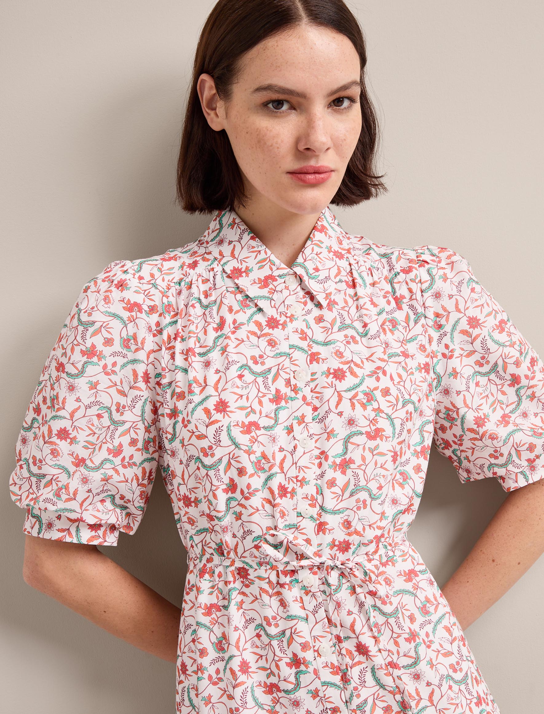 The Poppy is a classic shirt dress with a puff sleeve and softly tiered skirt which lend femininity. Cut from a cool and drapey cotton silk blend, it has a removable belt which can be cinched in to accentuate the waist or worn looser for an easy breezy fit. Undo the buttons for a more relaxed neckline or wear done up for preppy polish.