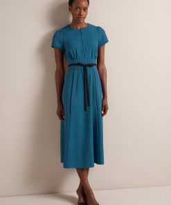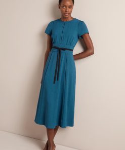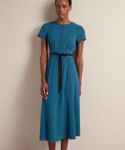 The epitome of understated elegance, the Rosie dress is a true Cefinn icon thanks to its versatility. Designed in our beautifully drapey, lightweight and machine washable voile, it works effortlessly for weddings, events or under a blazer for smarter office days. The reversible belt can be worn two ways – to co-ordinate with the dress, or to contrast with it for a more graphic look. Alternatively, swap it out for a belt of your own or remove it – we love to give you options.